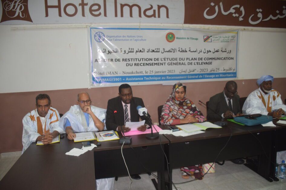 نظمت وزارة التنمية الحيوانية اليوم الأربعاء في نواكشوط ورشة عمل حول دراسة خطة الاتصال للتعداد العام للثروة الحيوانية، بالتعاون مع الوكالة الوطنية للإحصاء والتحليل الديموغرافي والاقتصادي، ومنظمة الأمم المتحدة للأغذية والزراعة “فاو”.