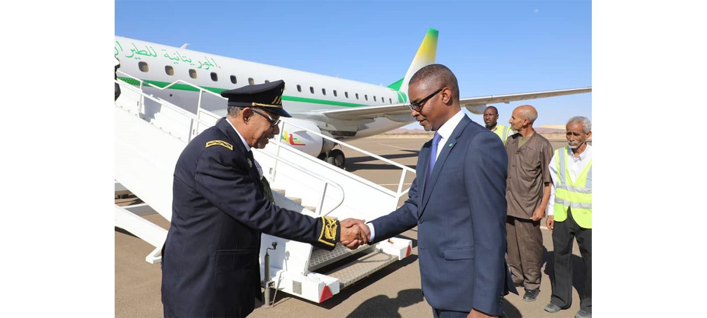 وودع معالي الوزير الأول بمطار مدينة النعمة من طرف عدد من أعضاء الحكومة ووالي الحوض الشرقي وممثلي السلطات الأمنية في الولاية.