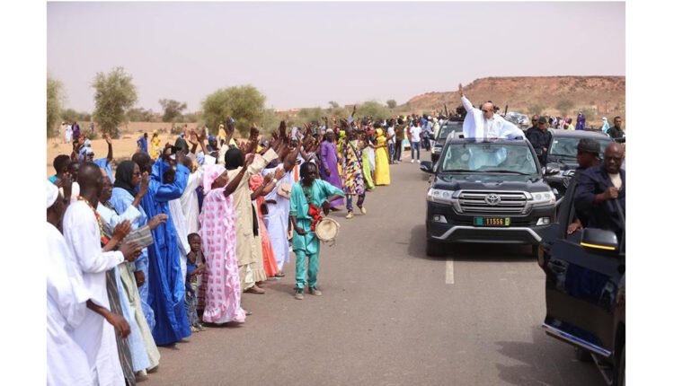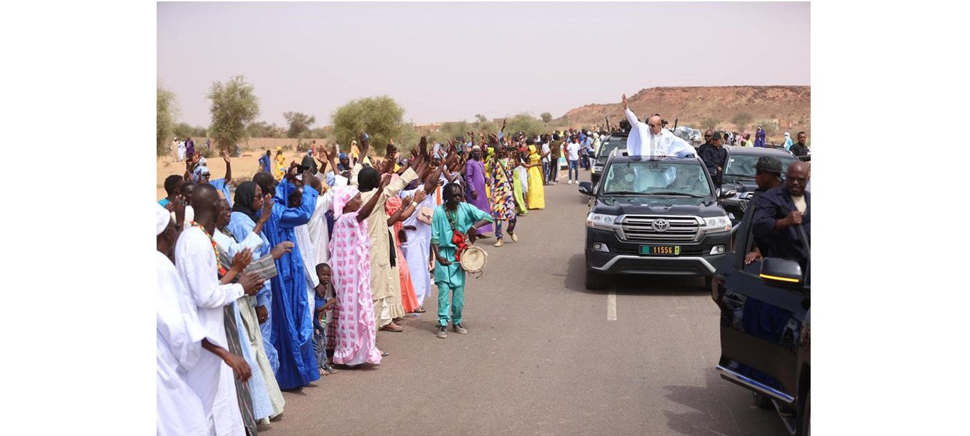 خصص سكان بلدية جول استقبالا شعبيا كبيرا لفخامة رئيس الجمهورية، السيد محمد ولد الشيخ الغزواني، لدى وصوله صباح اليوم الجمعة إلى هذه المدينة للإشراف على افتتاح النسخة الأولى من مهرجان جول الثقافي الذي تنطلق فعالياته اليوم.