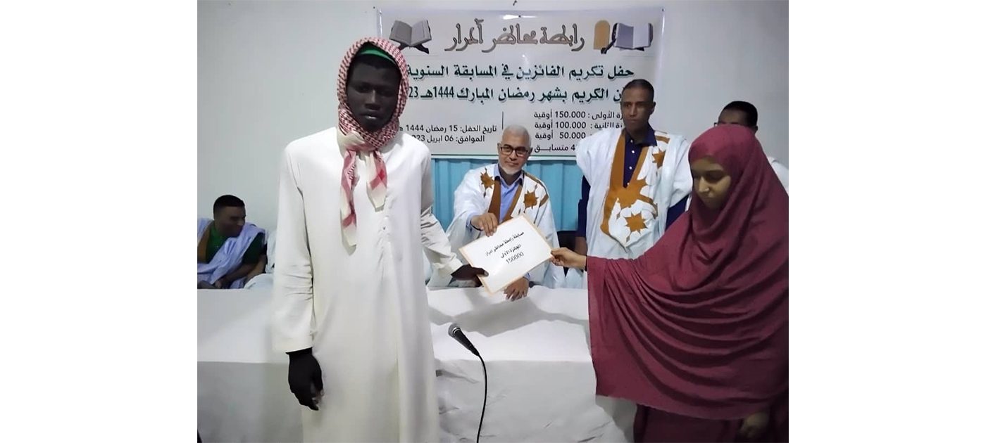 ومن جانبه، هنأ السيد محمد عبد الله ولد باها، رئيس رابطة محاظر آدرار الطلاب المشاركين في المسابقة، قائلا:”إن الجوائز المالية المقدمة للفائزين الأوائل تتراوح ما بين 150 ألف أوقية قديمة و50 ألف أوقية قديمة”.