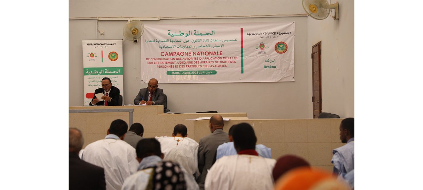 وسيتم خلال هذا اليوم عرض ومناقشة القانونين المتعلقين بمنع ومعاقبة الاتجار بالأشخاص والقانون المجرم للعبودية والممارسات الاستعبادية مع المعنيين بإنفاذ القانون على مستوى ولاية لبراكنه من قضاة وضباط شرطة قضائية.