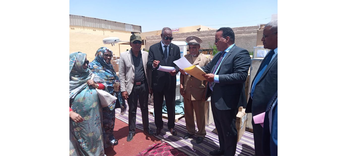 أشرف الأمين العام لوزارة الشؤون الاقتصادية وترقية القطاعات الإنتاجية السيد يعقوب ولد احمد عيشة صحبة الأمين العام لوزارة الصحة السيد محمد الأمين ولد محمد الحاج أمس الجمعة في مركز الاستطباب الجهوي بمدينة ألاك على تسليم تجهيزات غرف عمليات الولادة بمركز الاستطباب وذلك في إطار التدخلات التي ينفذها برنامج”أسويد” في ولايات الحوضين، العصابة، كوركل، كيدماغة ولبراكنة .