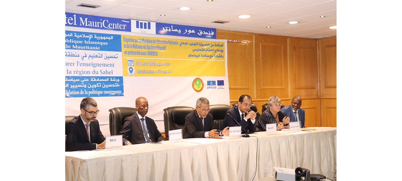 افتتحت اليوم الثلاثاء بنواكشوط ورشة للمصادقة على سياسة تعليمية لتحسين تكوين وتسيير المدرسين منظمة من طرف وزارة التهذيب الوطني وإصلاح النظام التعليمي بالتعاون مع اليونسكو، بواسطة مشروع تحسين التعليم في دول الساحل.