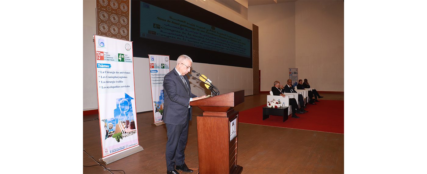 وتعهد باسم قطاع الصحة باتخاذ أسرع وأنجع الإجراءات من أجل تنفيذ التوصيات الاجتماعية الجامعة بين الطموح العالي و قابلية التنفيذ التي قد يوصي بها المؤتمرون، خصوصا فيما يتعلق منها بمزيد العناية بجراحة الأعصاب ببلادنا، تكوينا قاعديا وتمرینا مهنيا واقتناء للتجهيزات والتقنيات المتطورة.