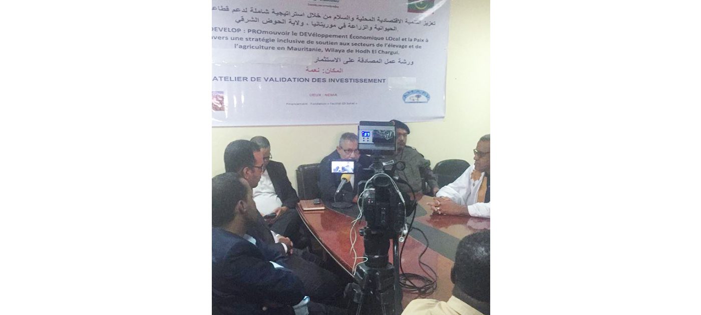 انطلقت اليوم الثلاثاء في مدينة النعمة أعمال ورشة جهوية حول المصادقة على مشروع تعزيز التنمية الاقتصادية المحلية والسلام من خلال دعم قطاعي الثروة الحيوانية والزراعة بولاية الحوض الشرقي، منفذ بالتعاون بين وزارة الإقتصاد والتنمية المستدامة ومنظمة كوبي وبدعم من الشركاء في التنمية .