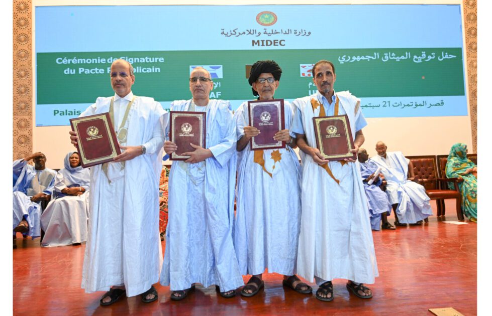 وقعت الحكومة ممثلة بوزارة الداخلية واللامركزية وأحزاب اتحاد قوى التقدم وتكتل القوى الديمقراطية والإنصاف مساء أمس الخميس بنواكشوط على وثيقة: الميثاق الجمهوري.