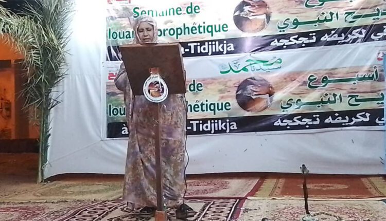 بدورها أوضحت رئيسة نادي المديح النبوي في لكريفه بتجكجة السيده خدي بنت عبد الجليل أن تنظيم هذا المهرجان في هذا الظرف الزمني الذي يصادف ذكرى مولد النبي عليه أفضل الصلاة والسلام لم يكن اعتباطا وإنما كان نابعا من حبنا لنبينا وحرصنا على التعريف بشمائله والتنويه بها من خلال تكرار مدائحه.