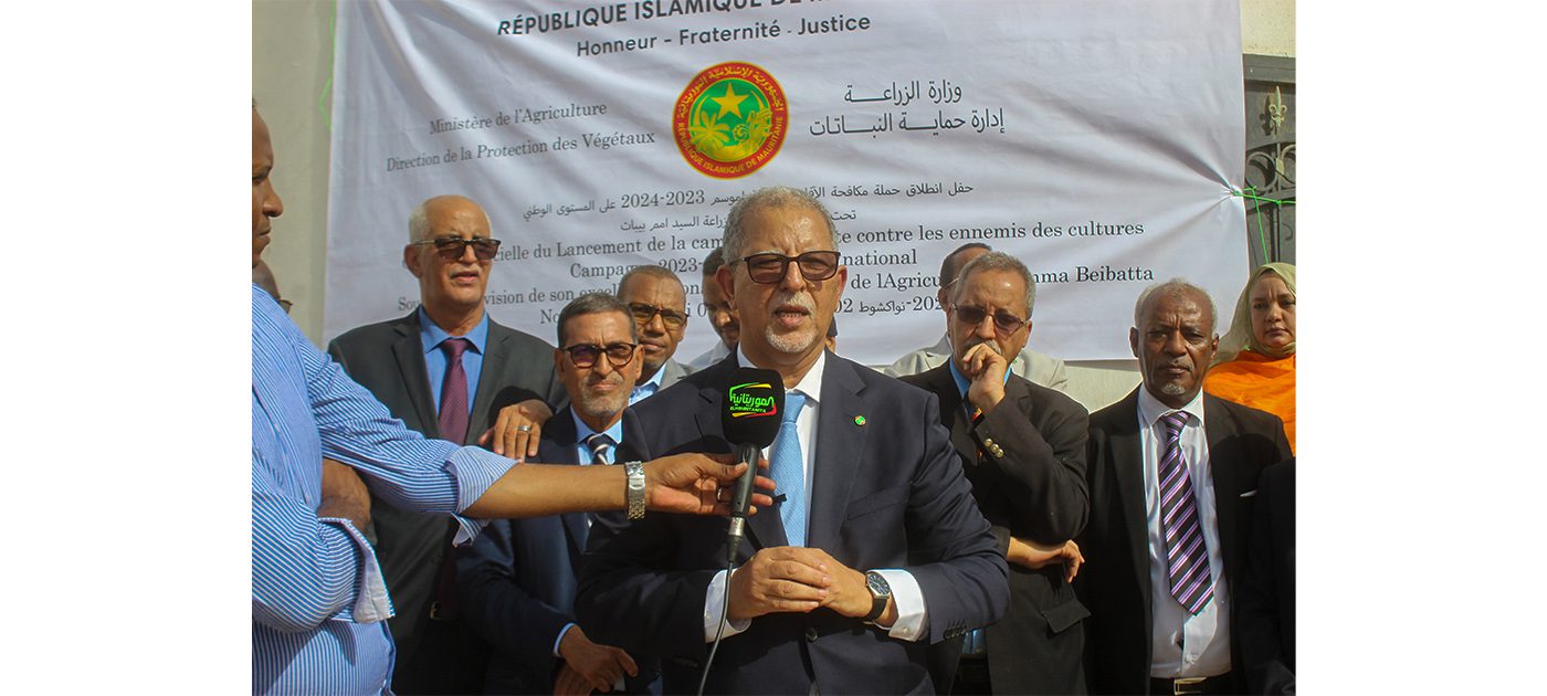 أشرف معالي وزير الزراعة السيد أمم ولد بيبات حماه الله، اليوم الاثنين بمباني مديرية حماية النباتات في نواكشوط، على إطلاق حملة مكافحة الآفات الزراعية على مستوى المناطق الزراعية الرعوية وذلك في إطار الاجراءات المتخذة لإنجاح الحملة الزراعية لموسم 2023-2024.