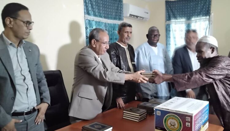 وقال الوالي أنتم تعلمون ان القرآن الكريم هو دستور الأمة الإسلامية واننا دولة من الدول التي اختارت أن تسمي نفسها بالجمهورية الإسلامية وبالتالي علينا أن نجسد هذه التسمية بأن نكون رائدين في هذا المجال واول من يحافظ على مبادئ الإسلام وعلى القرآن في قلوب الناس وفي منازلهم تأسيا بما قام به الأجداد من نشر الإسلام في الكثير من البلدان الإفريفية ولا زلنا ولله الحمد على نفس الطريق ، معربا عن أمله أن تكون الكمية التي رصدت للولاية كافية وتوزع بطريقة شفافة على مختلف المقاطعات والبلديات لتعم الفائدة.
