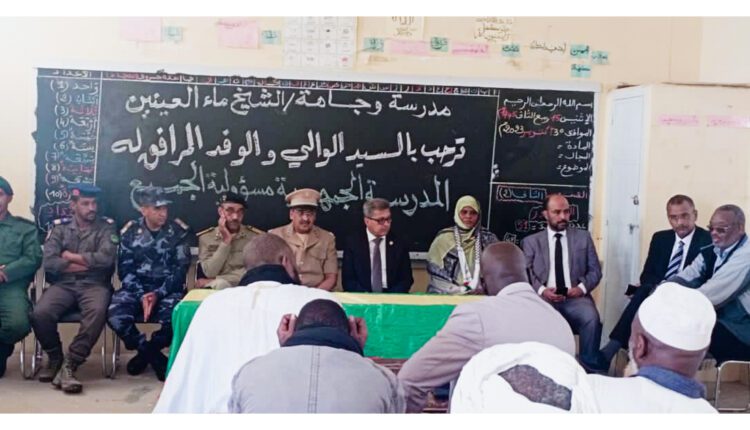 ترأس والي داخلت نواذيبو، السيد ماحى ولد حامد صباح اليوم الثلاثاء بمدرسة “وجاهة/ الشيخ ماء العينين بحي الباز في مدينة نواذيبو فعاليات رفع العلم الوطني على أنغام النشيد الوطني الذى صدحت به حناجر تلاميذ المدرسة.