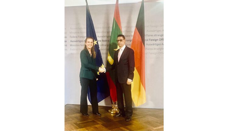 أجرى معالي وزير الاقتصاد والتنمية المستدامة السيد عبد السلام ولد محمد صالح، أمس الجمعة في برلين، جلسة عمل مع وزير الدولة للشؤون الخارجية الالمانية السيدة كاتيا كيل.