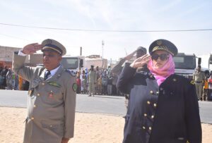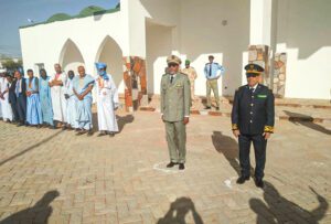 واستعرضت الوالي رفقة قائد التجمع الجهوي للحرس الوطني رقم 14 العقيد الحاج محمد سيد احمد ولد ألمين، وحدة من الحرس الوطني أدت لهما تحية الشرف قبل أن مصافحة رؤساء المصالح الجهوية وقادة الاجهزة الأمنية على مستوى الولاية.
