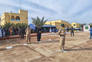 وقد استعرض الوالي، رفقة قائد المنطقة العسكرية الرابعة العقيد الشيخ سيدي بوي ولد السالك، فرقا من المنطقة العسكرية الرابعة وفرقة من الحرس الوطني أدت لهما تحية الشرف.