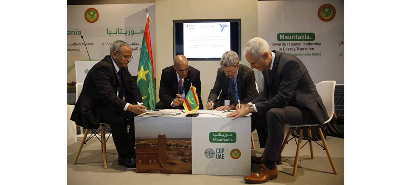 وقع معالي وزير البترول والمعادن والطاقة، الناطق باسم الحكومة، السيد الناني ولد اشروقه، أمس الثلاثاء بجناح موريتانيا بقمة المناخ (كوب 28)، على مذكرة تفاهم بين الوزارة وشركة “سنيم” من جهة، وشركة “شاريوت” و”توتال أرن” من جهة ثانية.
