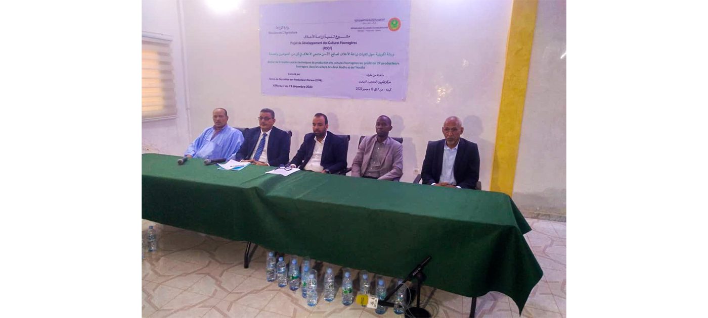 وبدوره قال المنسق الوطني لمشروع تنمية زراعة الأعلاف، السيد سيدي ولد احمد مولود، إن الورشة تجسد الدخول الفعلي لزراعة الأعلاف في المنظومة الوطنية للإنتاج الزراعي، الأمر الذي تضمنته تعهدات فخامة رئيس الجمهورية بخلق أقطاب لإنتاج الأعلاف في عدة مناطق من الوطن.