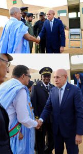 واستعرض فخامة رئيس الجمهورية وحدات من القوات المسلحة أدت له تحية الشرف، وذلك قبل أن يصافح سيادته أطر ووجهاء هذه الولاية.