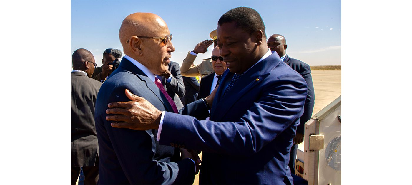 وكان فخامة رئيس الجمهورية السيد محمد ولد الشيخ الغزواني على رأس مستقيلي الضيف التوغولي، عند سلم الطائرة بمطار نواكشوط الدولي أم التونسي، رفقة معالي الوزير الأول السيد محمد ولد بلال مسعود، والوزير المكلف بديوان رئيس الجمهورية، وقادة أركان القوات المسلحة وقوات الأمن وقائد الأركان الخاصة لرئيس الجمهورية ووالي نواكشوط الغربية ورئيسة جهة نواكشوط.