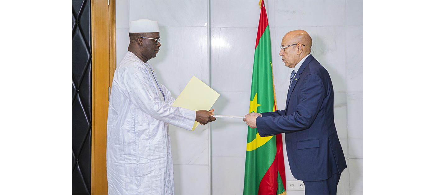 تسلم فخامة رئيس الجمهورية، السيد محمد ولد الشيخ الغزواني، اليوم الثلاثاء بالقصر الرئاسي في نواكشوط، أوراق اعتماد سعادة السيد ماندجو ديوبات، بوصفه سفيرا فوق العادة وكامل السلطة لجمهورية غينيا لدى الجمهورية الإسلامية الموريتانية.