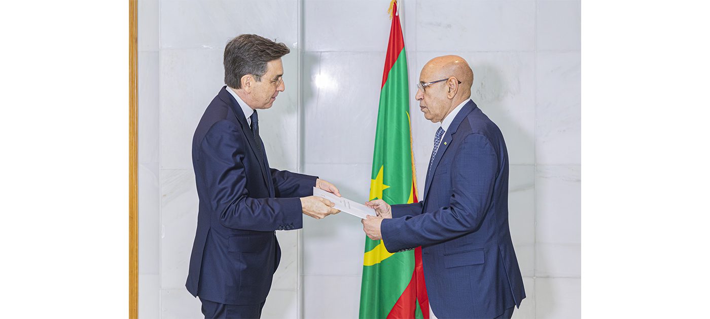 تسلم فخامة رئيس الجمهورية، السيد محمد ولد الشيخ الغزواني، اليوم الثلاثاء بالقصر الرئاسي في نواكشوط، أوراق اعتماد سعادة السيد كارلوس بريرا، بوصفه سفيرا فوق العادة وكاملة السلطة، لجمهورية البرتغال، لدى الجمهورية الإسلامية الموريتانية.
