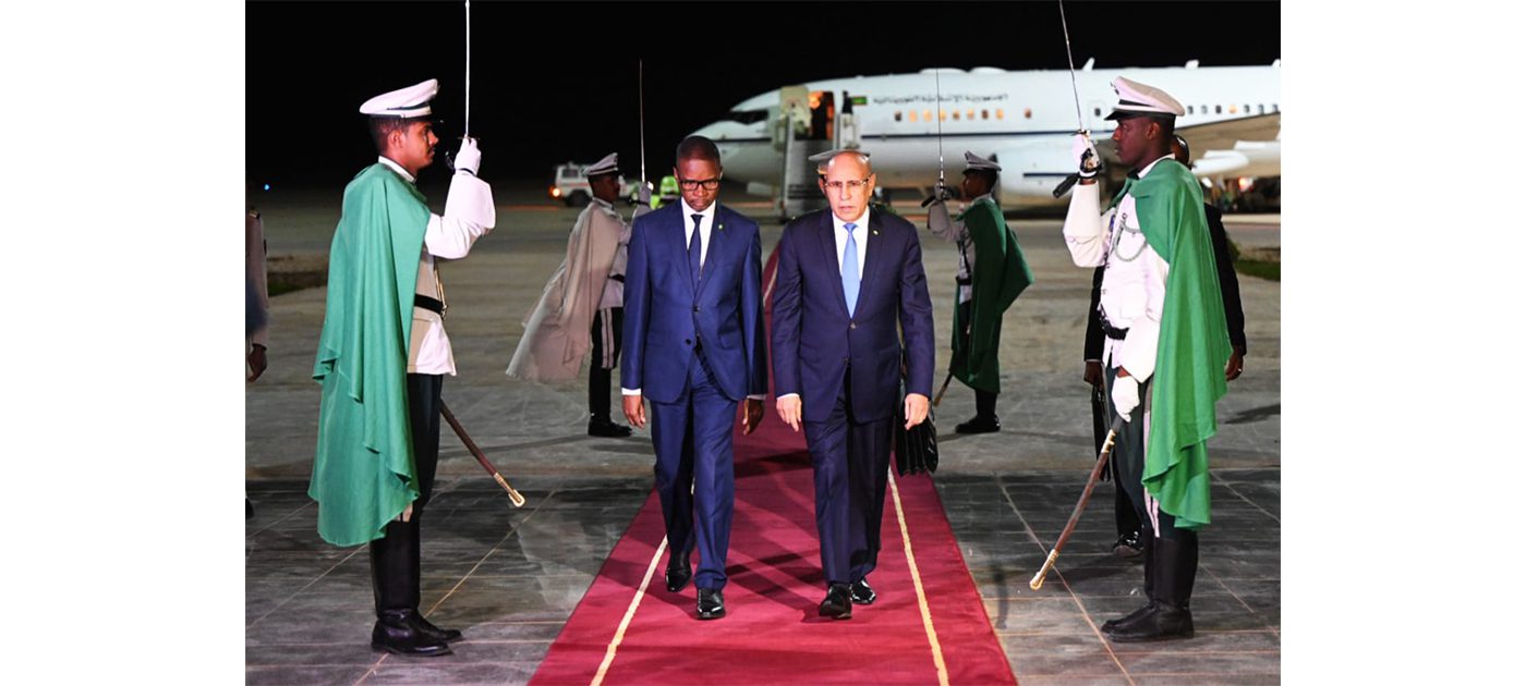 واستقبل فخامته بمطار نواكشوط الدولي ام التونسي، من طرف معالي الوزير الأول السيد محمد ولد بلال مسعود، والوزير الأمين العام لرئاسة الجمهورية، والوزيرين المستشارين برئاسة الجمهورية، وعدد من أعضاء الحكومة، والمديرة المساعدة لديوان رئيس الجمهورية، ووالي نواكشوط الغربية، ونائبة رئيسة جهة نواكشوط.
