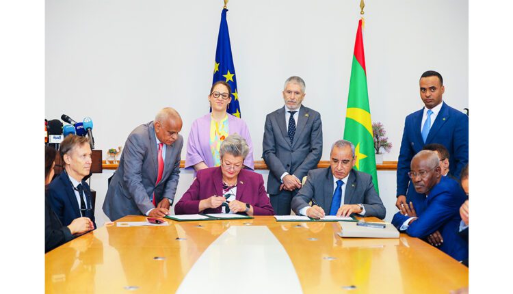 وأضاف أن هذه الزيارات مكنت من تصور وتحضير الإعلان المشترك، الذي تم توقيعه اليوم، ضمن المحطة الخامسة في هذه الديناميكية المتواصلة، والذي هو بمثابة وثيقة مرجعية بهذا الخصوص، مبينا أن هذه الشراكة متعددة الجوانب، تشمل مكونات اقتصادية، وديبلوماسية، وأمنية، وفي مجال الهجرة الشرعية نحو أوروبا، لصالح الموريتانيين، ومكافحة الهجرة غير الشرعية، واللاجئين.