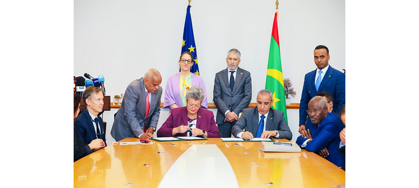 وقد وقع الإعلان المشترك وزير الداخلية واللامركزية السيد محمد أحمد ولد محمد الأمين، والسيدة ايلفا يوهانسون المفوضة الاوروبية للهجرة والشؤون الداخلية، وذلك بحضور عن الجانب الموريتاني معالي وزير الاقتصاد والتنمية المستدامة السيد عبد السلام ولد محمد صالح ومعالي وزير التعليم العالي والبحث العلمي السيد انيانغ مامودو، وسفيرنا لدى الاتحاد الأوروبي سعادة السيد محمد محمود ولد ابراهيم اخليل، وعن الجانب الاوروبي معالي وزير الداخلية الاسباني، السيد افيرنادو غراندي مارلاسكا، وكاتبة الدولة البلجيكية للهجرة واللجوء، السيدة نيكول دمو، والسفير، رئيس بعثة الاتحاد الأوروبي المعتمد لدى موريتانيا.