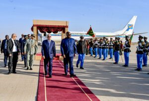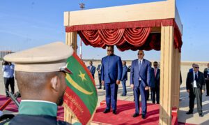 وكان فخامة رئيس الجمهورية السيد محمد ولد الشيخ الغزواني الرئيس الدوري للاتحاد الأفريقي على رأس مستقبلي الضيف الكونغولي عند سلم الطائرة بمطار نواكشوط الدولي أم التونسي، محاطا بمعالي الوزير الأول السيد محمد ولد بلال مسعود، والوزير المكلف بديوان رئيس الجمهورية وقادة أركان القوات المسلحة وقوات الأمن وقائد الأركان الخاصة لرئيس الجمهورية ووالي نواكشوط الغربية المساعد ورئيسة جهة نواكشوط والقائم بالأعمال بالسفارة الكونغولية في بلادنا.