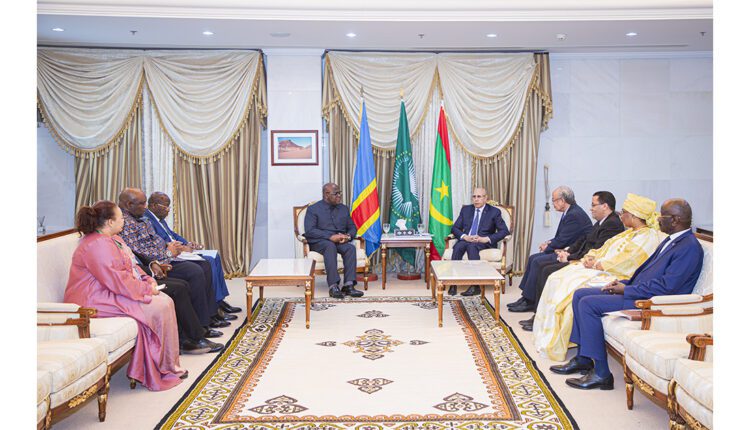 أجرى فخامة رئيس الجمهورية، رئيس الاتحاد الافريقي السيد محمد ولد الشيخ الغزواني، مساء الأربعاء بالقصر الرئاسي، مباحثات على انفراد مع فخامة رئيس جمهورية الكونغو الديمقراطية السيد فيليكس تشيسكيدي، الذي يقوم حاليا بزيارة صداقة وعمل لبلادنا.
