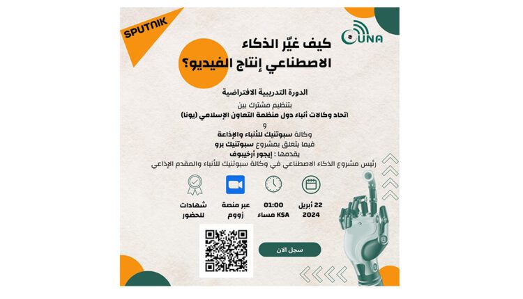 يعقد اتحاد وكالات أنباء دول منظمة التعاون الإسلامي (يونا) في 22 أبريل 2024 دورة تدريبية افتراضية بعنوان “كيف غيّر الذكاء الاصطناعي إنتاج الفيديو”، وذلك بالتعاون مع وكالة أنباء “سبوتنيك”.