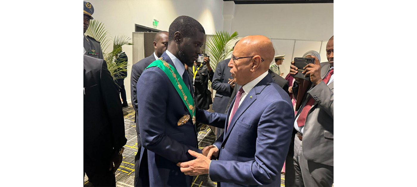 يقوم رئيس جمهورية السنغال الشقيقة صاحب الفخامة السيد باسيرو ديوماي فاي، اليوم الخميس (18 ابريل 2024)، بزيارة صداقة وعمل لموريتانيا تستمر يوما واحدا يلتقي خلالها بأخيه فخامة رئيس الجمهورية، رئيس الاتحاد الافريقي، السيد محمد ولد الشيخ الغز واني.