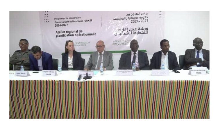 أشرف والي كيدي ماغه السيد أحمد ولد محمد محمود ولد الديه اليوم الثلاثاء في فندق واكادو بمدينة سيليبابي على إطلاق ورشة جهوية للتخطيط من أجل بناء القدرة على الصمود، منظمة من طرف صندوق الأمم المتحدة للطفولة.
