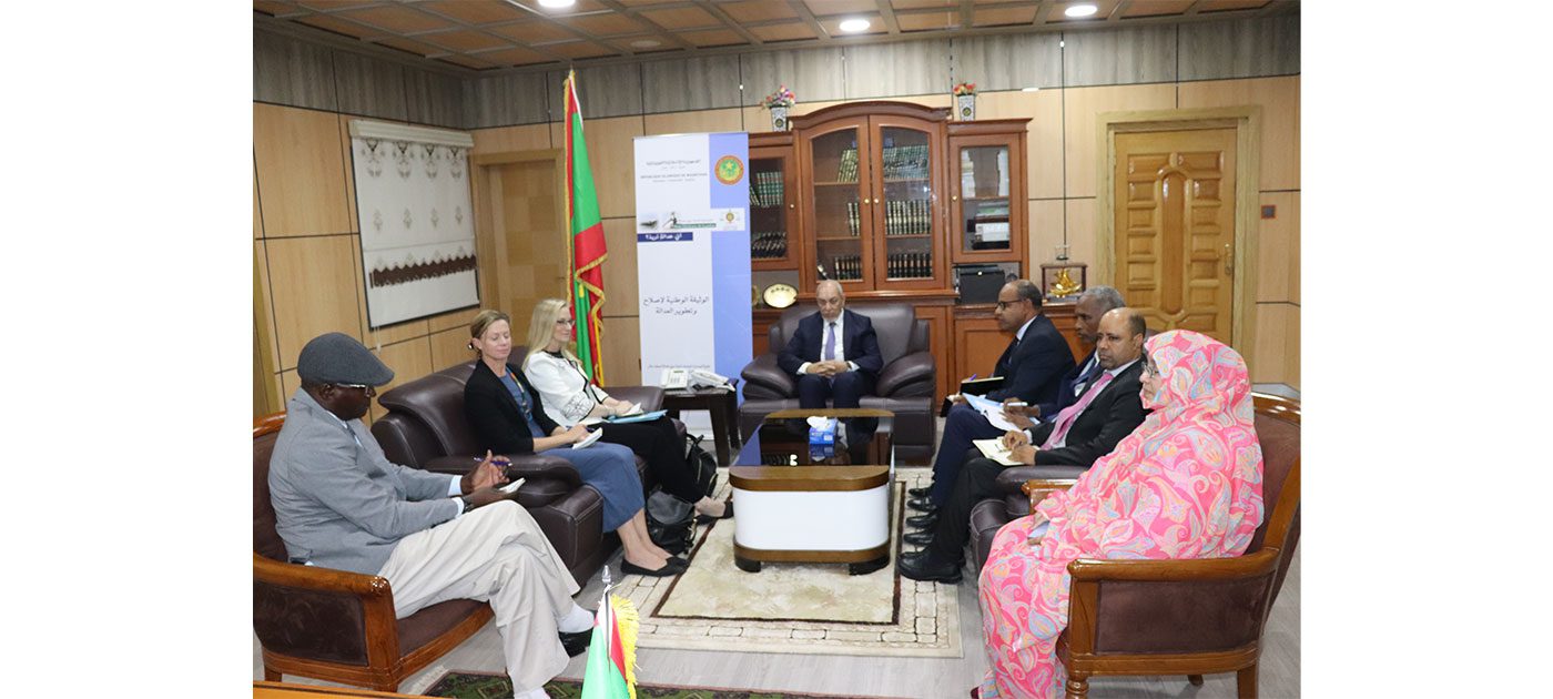 حضر اللقاء إلى جانب معاليه كل من الأمين العام بالوكالة السيد أعمر القاسم، والمستشارة الفنية المكلفة بالاتصال السيدة بنت أحميد بنت التكرور، والمستشار الفني المكلف بالحماية القضائية للطفل والنوع السيد مودي آبو جالو، ومدير التعاون والتعاون القضائي البيني الحسن الشيخ كبادي.