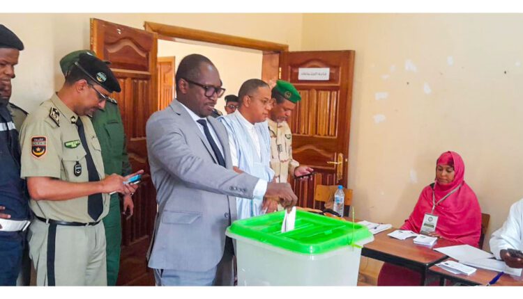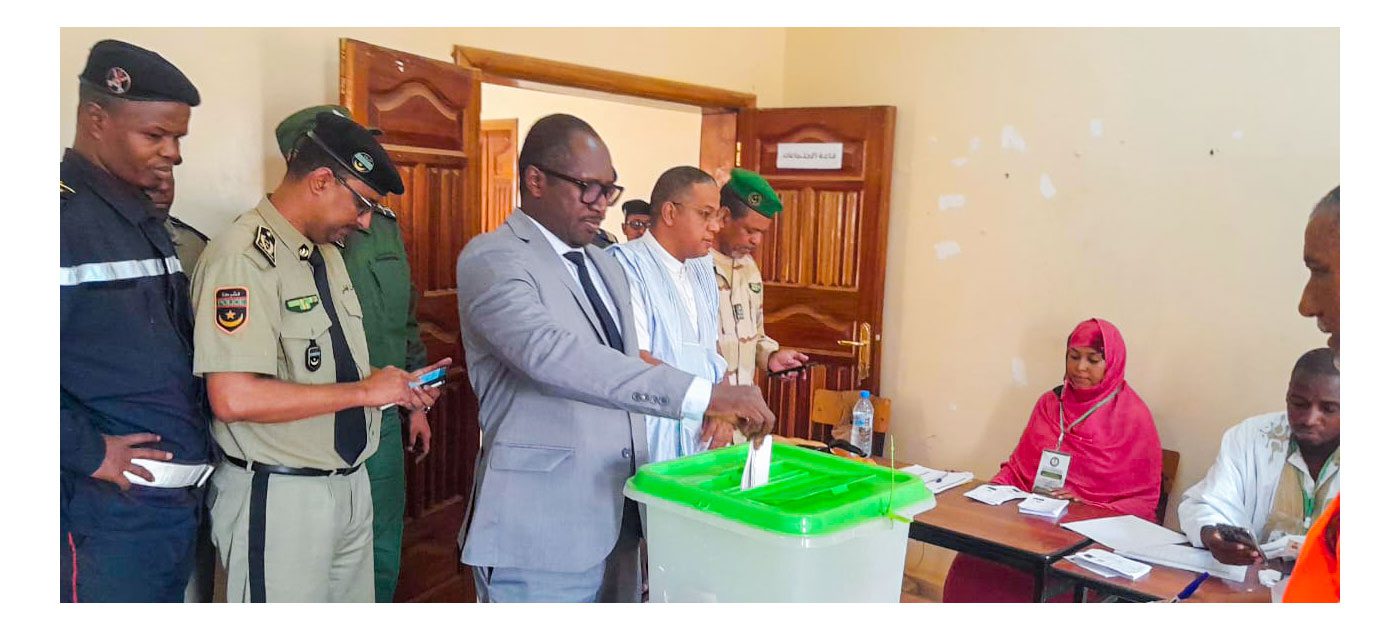 وفي هذا الاطار ادلى والي الحوض الغربي السيد احمدا مامادو كلي بصوته في مكتب الترقية النسوية في الحي الاداري وسط مدينة لعيون .