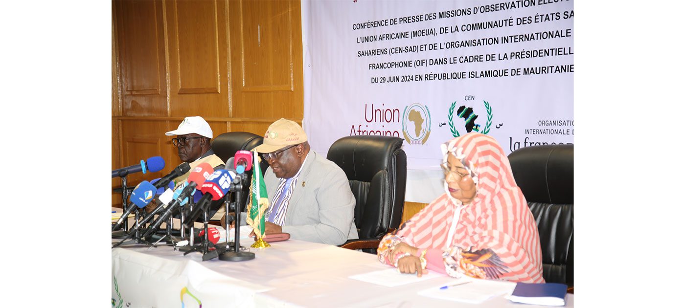 أعلنت ثلاث فرق مراقبين من الاتحاد الإفريقي، وتجمع دول الساحل والصحراء (س، ص)، ومنظمة الفرانكفونية، في مؤتمر صحفي مشترك عقدوه اليوم الاثنين في فندق موريسانتر، أن اقتراع 29 يونيو 2024 جرى في جو سلمي وشفاف.