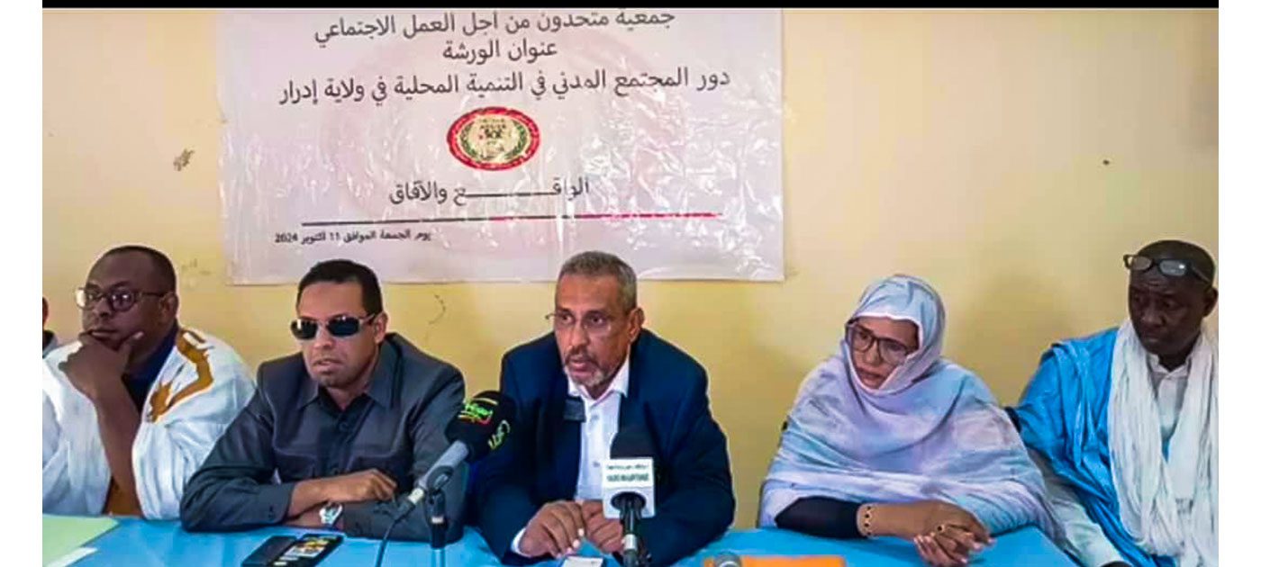أشرف مستشار والي آدرار، المكلف بالشؤون الإدارية والقانونية، السيد سيدي ولد الشيخ أحمد، اليوم الجمعة بدار الشباب في مدينة أطار، على افتتاح ورشة تحسيسية حول دور المجتمع المدني في تحقيق التنمية المحلية على مستوى الولاية.