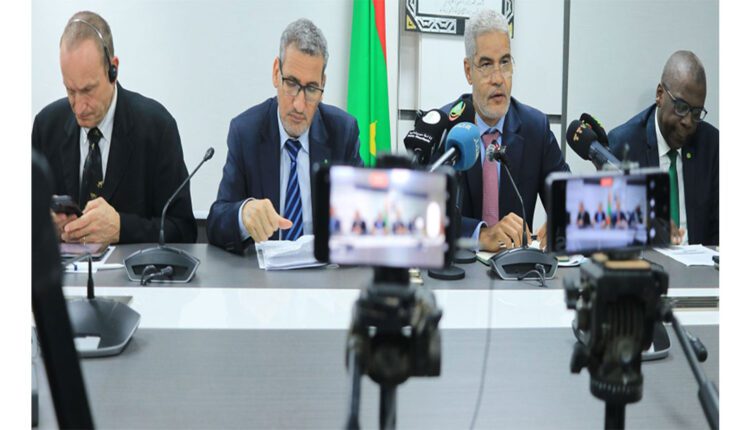 عقد معالي وزير الاقتصاد والمالية السيد سيد أحمد ولد أبوه، رفقة كل من معالي الوزير المنتدب لدى وزير الاقتصاد والمالية المكلف بالميزانية السيد كوديورو موسى انگنور، ومعالي محافظ البنك المركزي الموريتاني السيد محمد الأمين الذهبي، مساء أمس الأربعاء بمقر البنك المركزي في نواكشوط، مؤتمرا صحفياً مع بعثة من صندوق النقد الدولي، برئاسة السيد فيليكس فيشر نائب رئيس قسم الشرق الأوسط وآسيا الوسطى في البنك ورئيس بعثة الصندوق الدولي في موريتانيا؛ وذلك في ختام مهمتها في بلادنا.