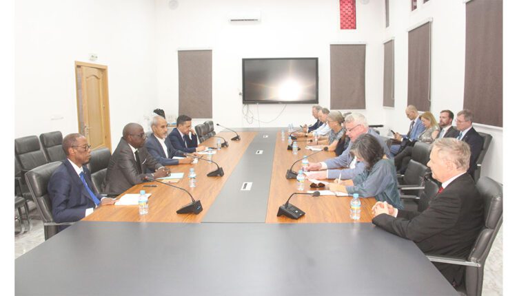 استقبل معالي الوزير المنتدب لدى وزير الاقتصاد والمالية، المكلف بالميزانية، وزير الاقتصاد والمالية وكالة، السيد كوديورو موسى انكنور، اليوم الاثنين بمكتبه في نواكشوط، وفدا من البرلمان الألماني، برئاسة النائب كنيت جرسشو.