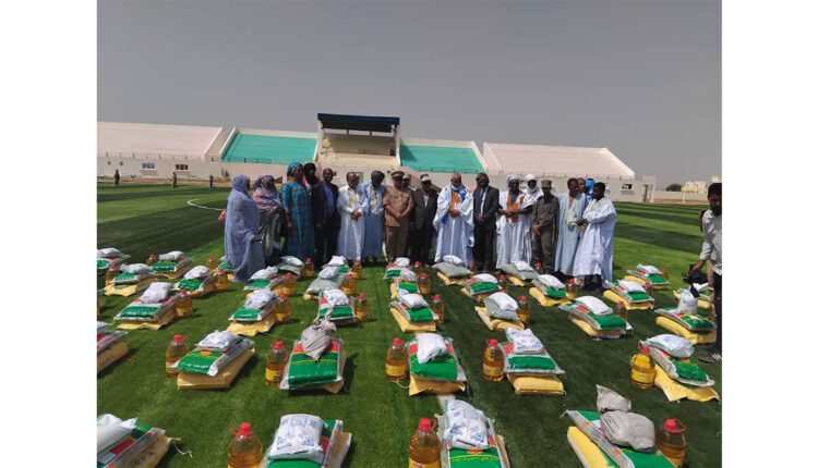 اشرف والي اترارزة السيد محمد ولد احمد مولود زوال اليوم الأربعاء بمركز ايواء المتضررين من الفيضانات الاخيرة بملعب الكيلوميتر 7 بمدينة روصو على توزيع 210 من السلات الغذائية مقدمة من طرف جهة اترارزة لصالح مركزي ايواء المتضررين على مستوى مركز روصو ومركز البزول 3 بمقاطعة انتيكان .