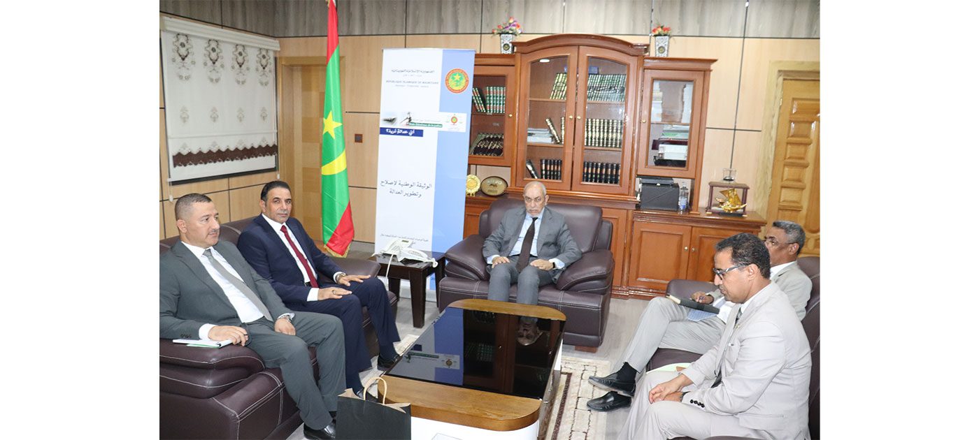 حضر اللقاء الأمين العام للوزارة السيد محمد أحمد عيدة، والمستشارة المكلفة بالاتصال والنفاذ إلى العدالة السيدة منت أحميد التكرور، والمدير العام لمكتب تسيير الممتلكات المجمدة والمحجوزة والمصادرة والأموال الجنائية السيد الخليل أحمد.