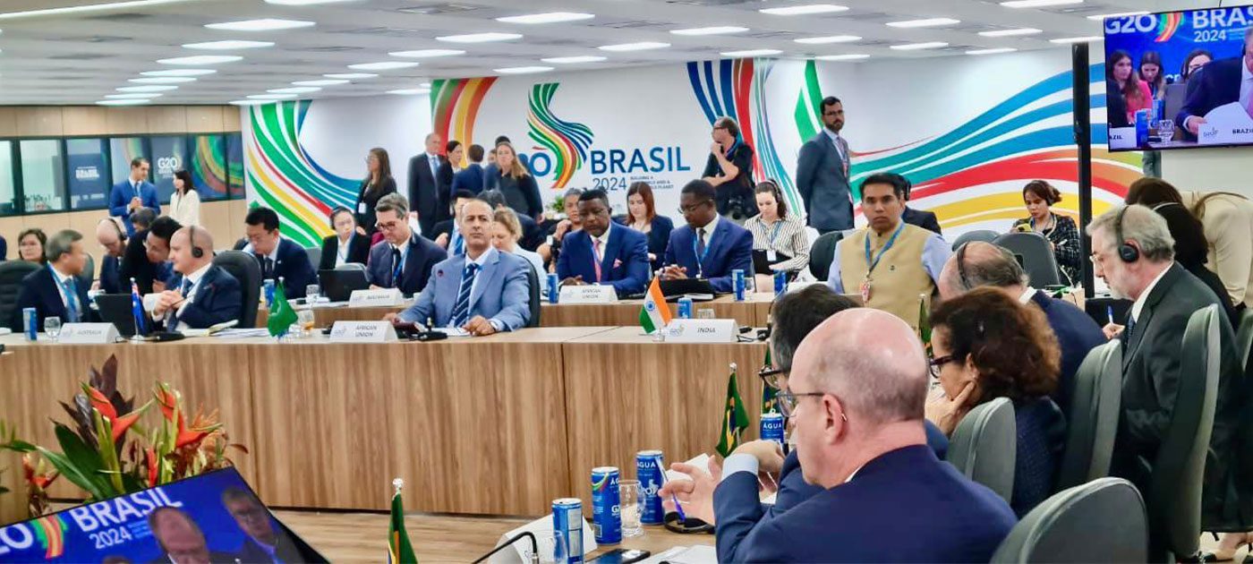 وأشار المستشار برئاسة الجمهورية إلى أن موضوع: “بناء عالم عادل وكوكب مستدام”، الذي اختارته الرئاسة البرازيلية لمجموعة العشرين كشعار لها، يتطابق مع الرؤية الموريتانية وسعيها لجعل إفريقيا قارة تنعم بالتنمية المستدامة وتستفيد من الاستثمار العادل والنمو الشامل، وتساهم في تحقيق الرخاء العالمي المشترك، مضيفا أن افريقيا تشهد تحولا عميقا، بفعل مواردها البشرية الشابة والمبدعة، وفى ظل مبادرات مهمة كمنطقة التجارة الحرة القارية الأفريقية، مبرزا أن حصة القارة من التجارة العالمية لا تزال عند نسبة 3% فقط، على الرغم من أن إفريقيا تضم 17% من سكان العالم، وهذا التفاوت يبرز الحاجة الملحة إلى إصلاح النظام التجاري العالمي.