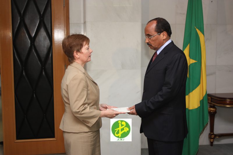 تسلم رئيس الجمهورية السيد محمد ولد عبد العزيز زوال اليوم الاربعاء بالقصر الرئاسي في نواكشوط أوراق اعتماد السيدة جو ألن بو ول، بوصفها سفيرة فوق العادة وكاملة السلطة للولايات المتحدة الامريكية لدى الجمهورية الاسلامية الموريتانية.