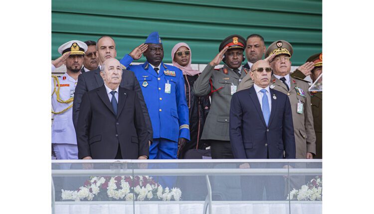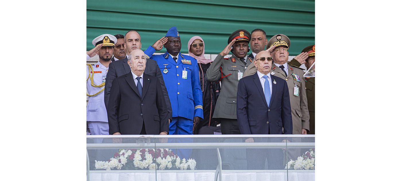 حضر فخامة رئيس الجمهورية، رئيس الاتحاد الإفريقي، السيد محمد ولد الشيخ الغزواني، صباح اليوم الجمعة، في الجزائر العاصمة، الاستعراض العسكري، بمناسبة تخليد الذكرى الـ70 لاندلاع ثورة التحرير الجزائرية، ليتقاسم مع الشعب الجزائري الشقيق فرحته بهذا الاحتفال الكبير، إلى جانب شقيقه فخامة رئيس الجمهورية الجزائرية السيد عبد المجيد تبون في المنصة الشرفية للاحتفال.