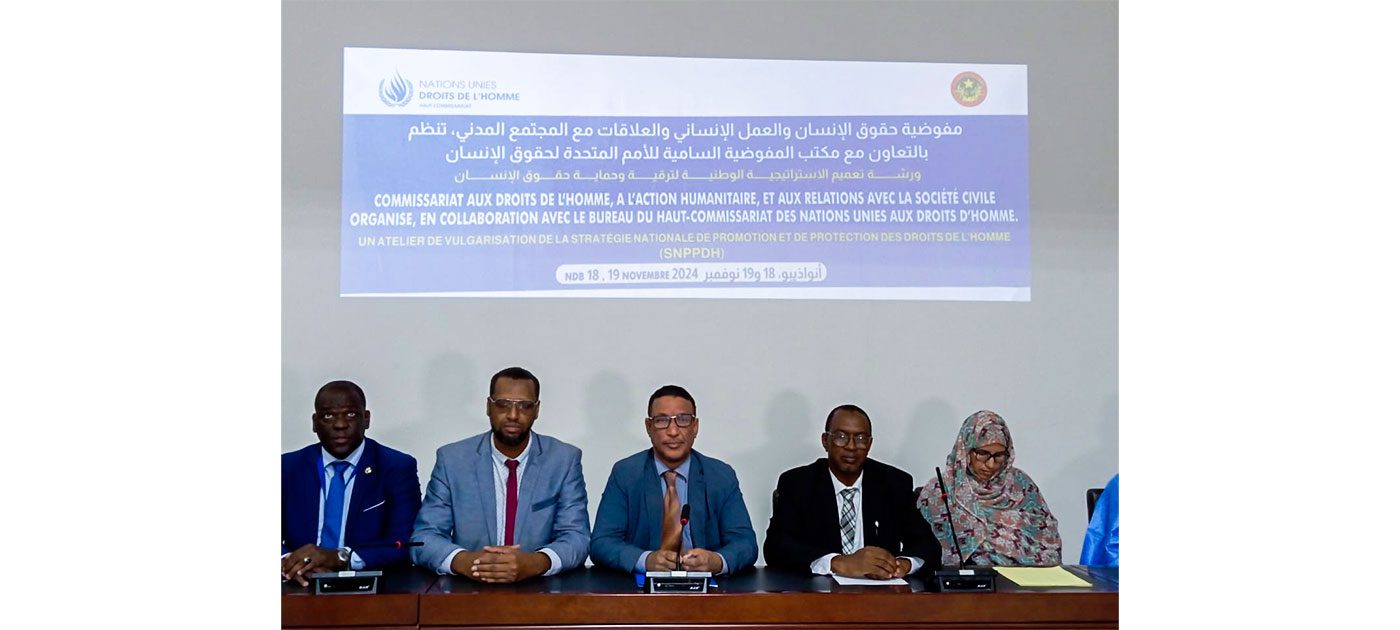 وتهدف هذه الورشة المنظمة من طرف مفوضية حقوق الإنسان والعمل الإنساني والعلاقات مع المجتمع المدني إلى إطلاع المشاركين الذين يمثلون الادارة المحلية والمصالح الجهوية وهيئات المجتمع المدني في ولاية داخلت نواذيبو، على مضامين هذه الاستراتيجية.