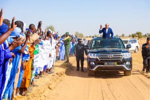أدى فخامة رئيس الجمهورية السيد محمد ولد الشيخ الغزواني، اليوم الثلاثاء، زيارة تفقد واطلاع لمركز إيواء المواطنين المتضررين من فيضانات النهر بمقاطعة ومبو، التابعة لولاية كيدي ماغه.