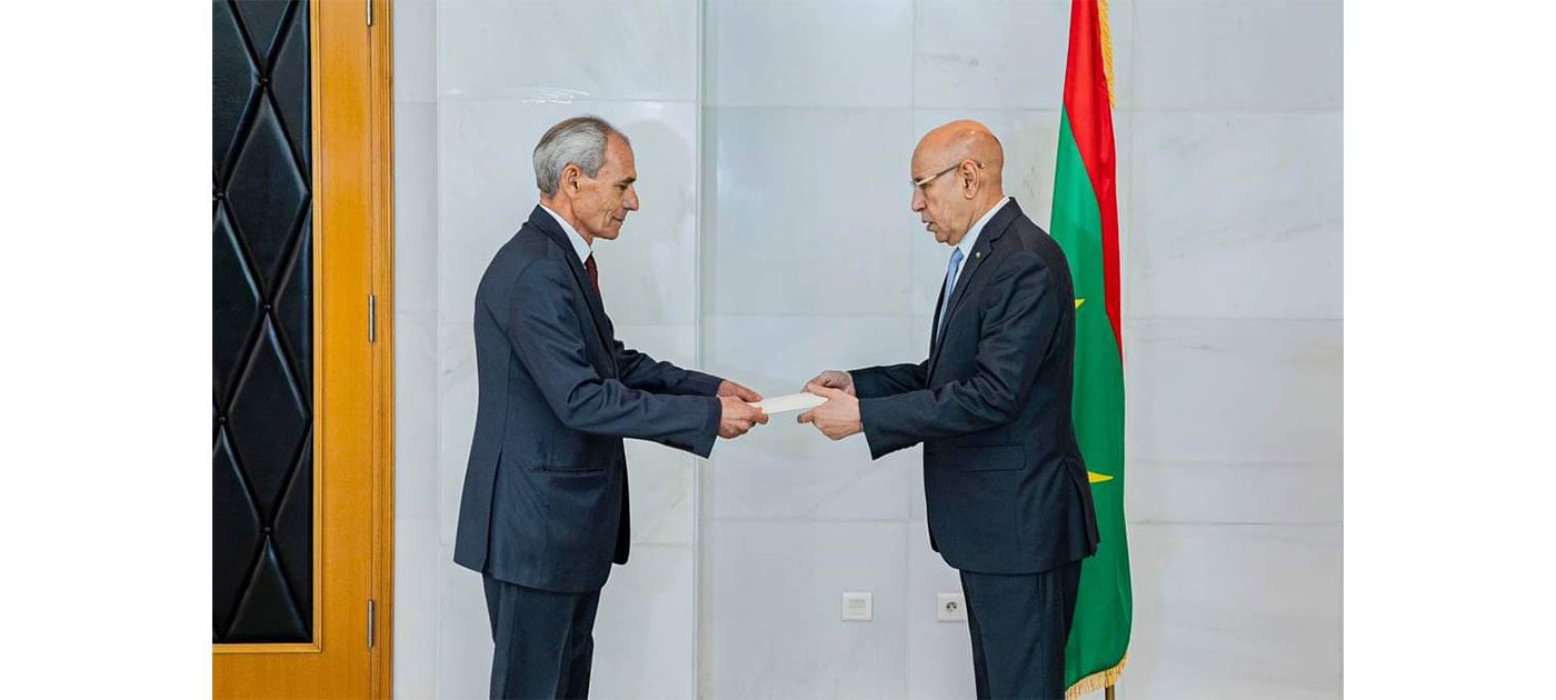 جرت مراسم تسليم أوراق الاعتماد، بحضور معالي الوزير المكلف بديوان رئيس الجمهورية السيد الناني ولد اشروقه، ومعالي وزير الشؤون الخارجية والتعاون الإفريقي والموريتانيين في الخارج السيد محمد سالم ولد مروزك، والمكلف بمهمة برئاسة الجمهورية السيد هارونا اتراورى، والسفير المدير العام للتعاون الثنائي بوزارة الشؤون الخارجية والتعاون الافريقي والموريتانيين في الخارج السيد محمد الحنشي الكتاب.