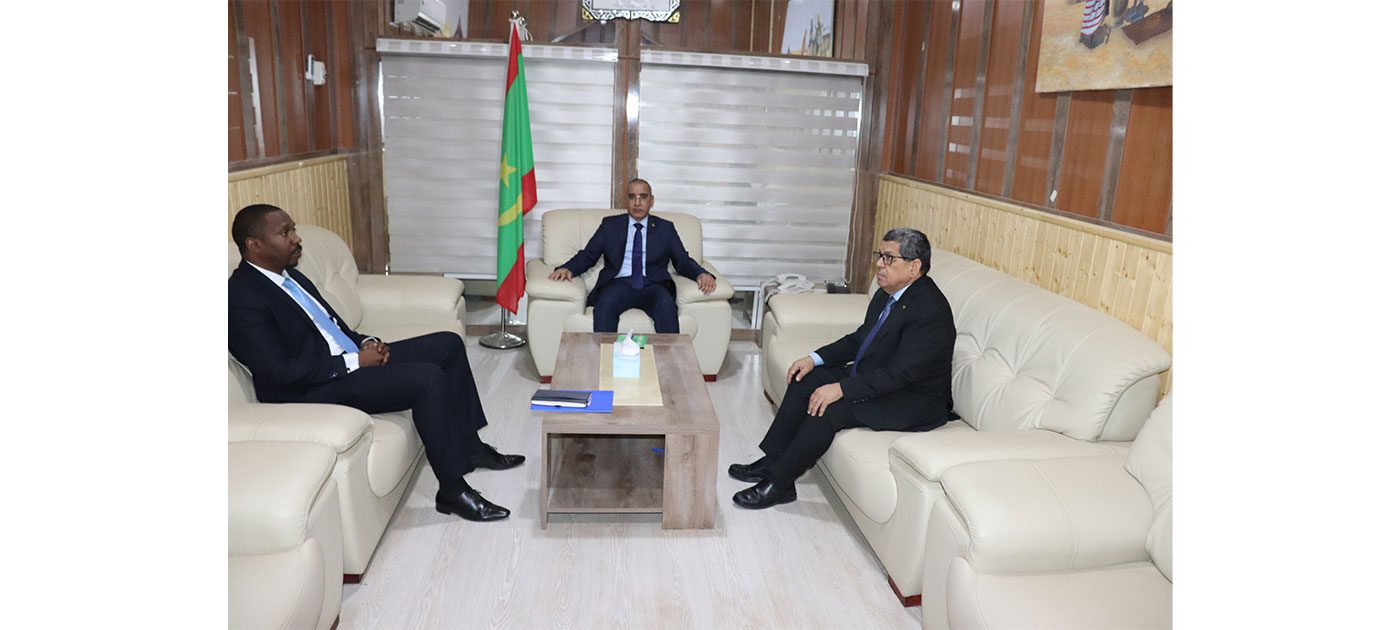 أجرى معالي وزير الداخلية و ترقية اللامركزية و التنمية المحلية، السيد محمد أحمد ولد محمد الأمين، اليوم الإثنين في مكتبه بمقر الوزارة في نواكشوط مباحثات مع الرئيس الجديد لبعثة المنظمة الدولية للهجرة في موريتانيا سعادة السيد إدريسا سومباري.