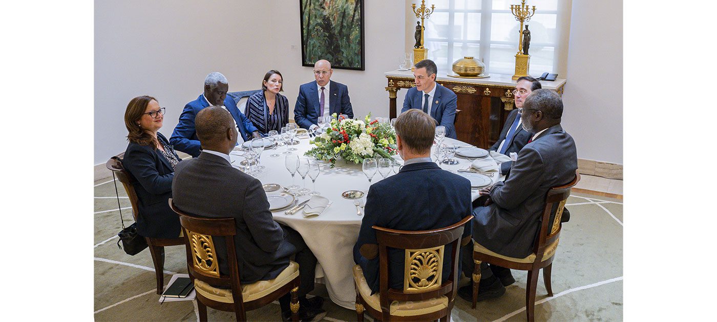 حضر فخامة رئيس الجمهورية، رئيس الاتحاد الإفريقي، السيد محمد ولد الشيخ الغزواني، زوال اليوم الخميس في العاصمة الإسبانية مدريد، مأدبة غداء، أقامها رئيس الحكومة الإسبانية السيد بيدرو سانشيز، على شرف الزعماء المشاركين في حفل إطلاق الاستراتيجية الإسبانية الخاصة بإفريقيا 2025-2028.
