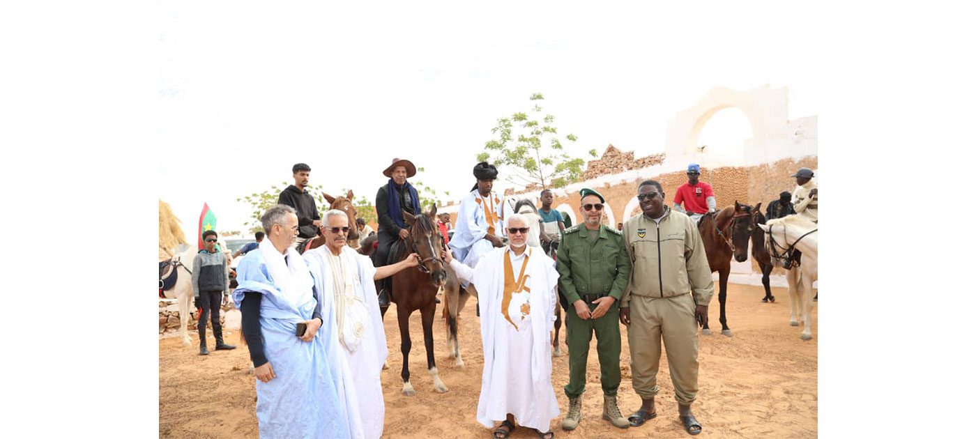 استقبل والي آدرار، السيد عبد الله ولد محمد محمود، صباح اليوم الثلاثاء بمدينة شنقيط، فريق الخيالة المشارك في السباق المنظم ضمن فعاليات مهرجان مدائن التراث، برئاسة لبرفسير سيد أحمد ولد مكيه، رئيس الاتحادية الموريتانية لرياضة الفروسية.