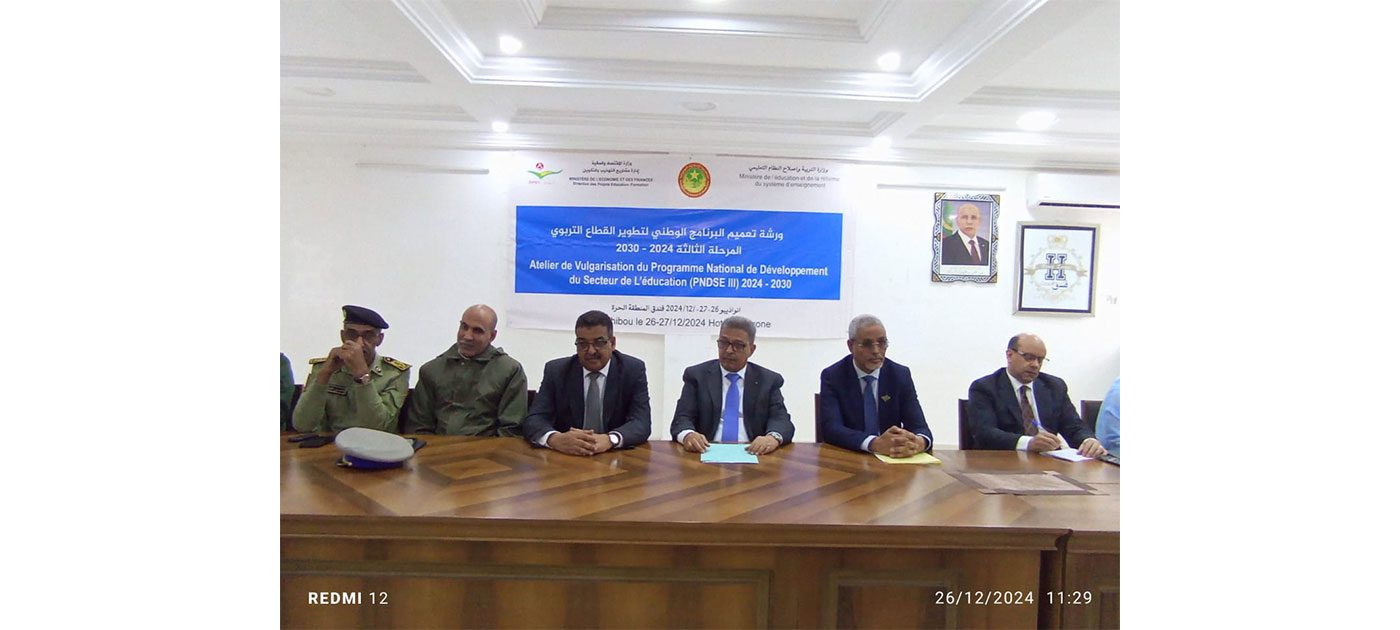 وتنظم هذه الورشة من طرف وزارة التربية وإصلاح النظام التعليمي، بالتعاون مع وزارة الاقتصاد والمالية ممثلة في إدارة مشاريع التهذيب والتكوين، لصالح الأسرة التربوية في ولايات تيرس الزمور وانشيري وآدرار وداخلت انواذيبو.