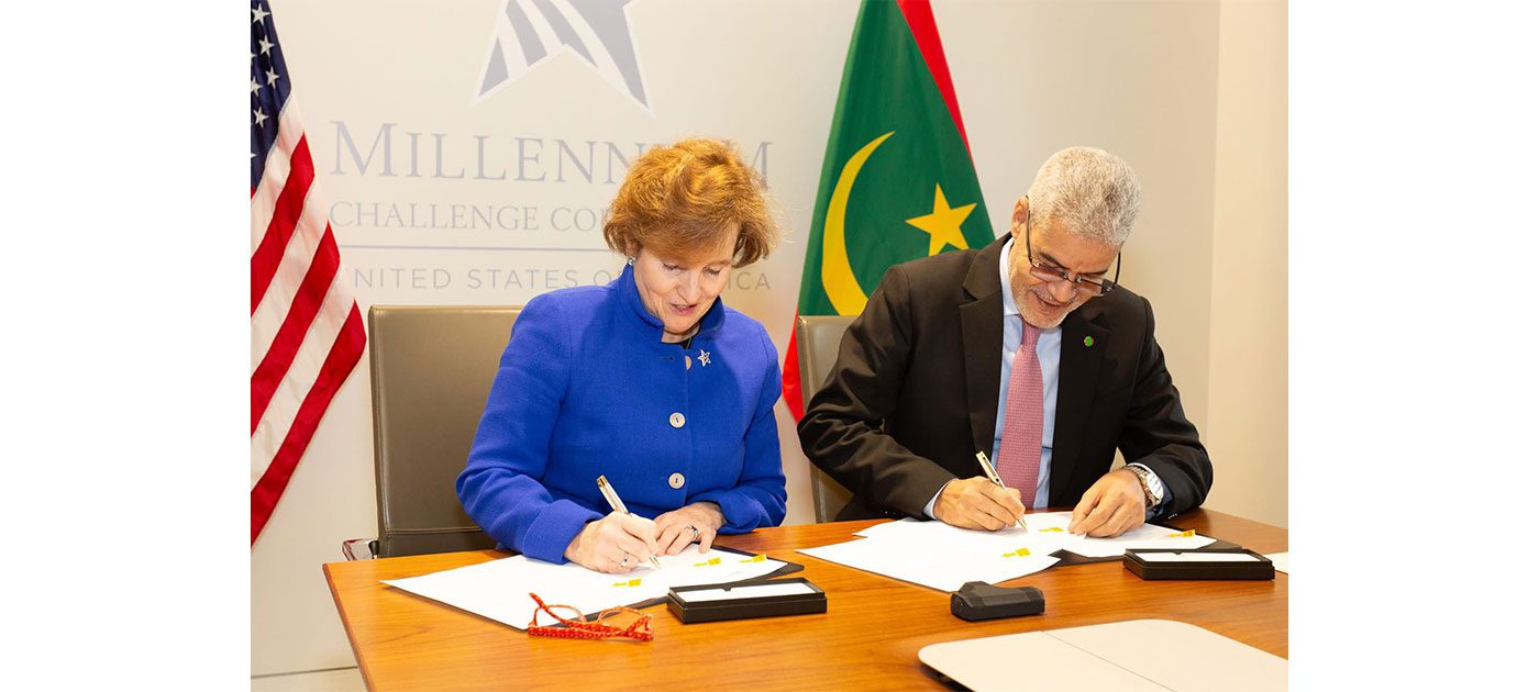 وقع معالي وزير الاقتصاد والمالية السيد سيد أحمد ولد ابُّوه، اليوم الثلاثاء في واشنطن بالولايات المتحدة الأمريكية، مع الرئيسة التنفيذية لمؤسسة تحدي الألفية الأمريكية، السيدة آليسا أولبرايت، على أول اتفاق تمويل بين بلادنا وهذه المؤسسة الفيدرالية.
